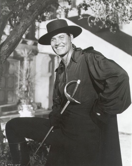 Guy Williams en su papel del Zorro, desenmascarado para posar